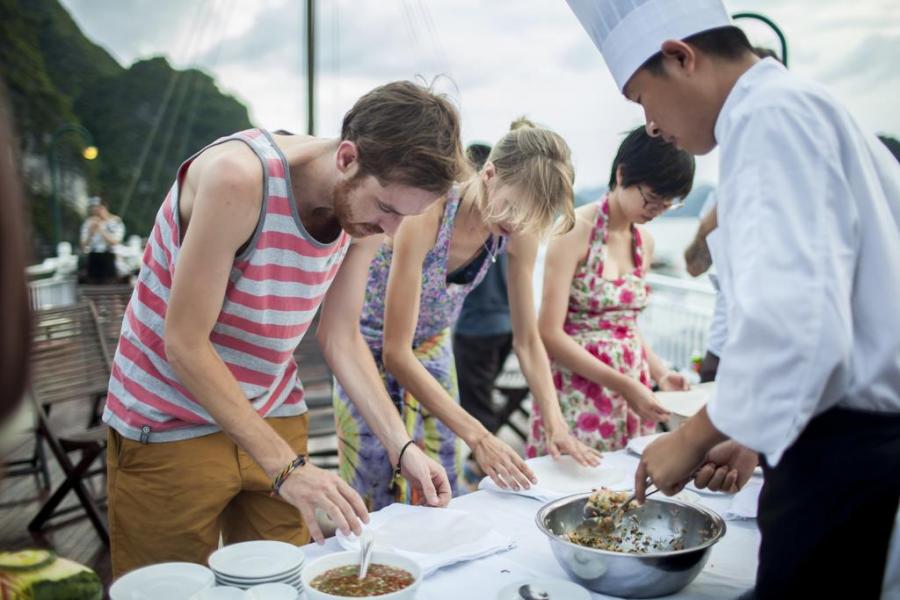 • Meals on-board are fusion: Vietnamese, seafood & international. Guests with any special food preferences, allergies, or dietary requirements should advise us at least one (01) week prior to the cruise date.