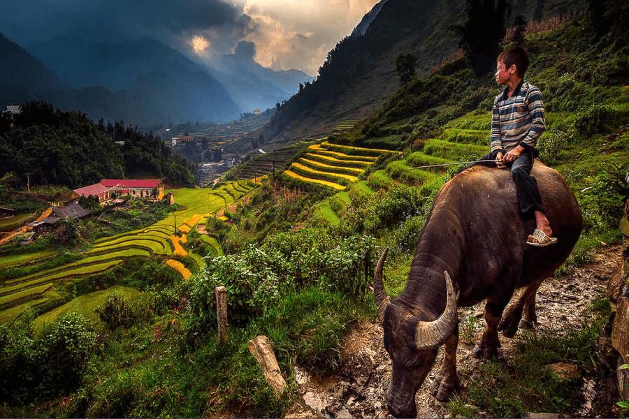 8.00: A short drive to Y Linh Ho then trek through the rice terraces and along Muong Hoa Stream to the Black Hmong village of Lao Chai to see the spectacular landscape of Hoang Lien Son Mountain then trek to Ta Van village - home of Dzay ethnic people.